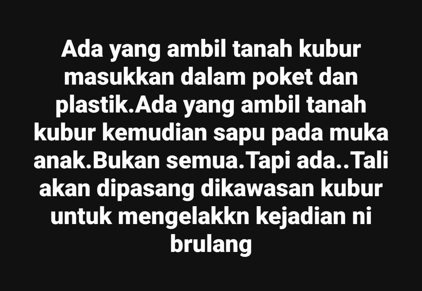 Sebabnya ada segelintir yang datang ziarah membuat perkara pelik. Ambil tanah kubur masuk dalam poket, ada juga sapu pada muka anaklah.